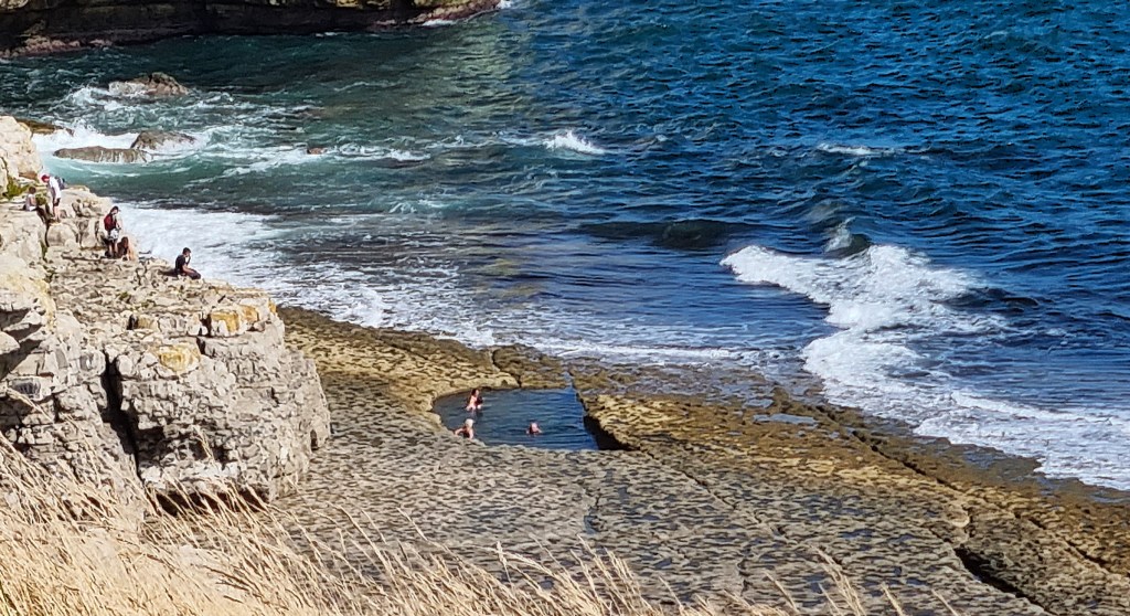 The tidal swimming pool on the Ledge was occupied by four bathers as we passed by.
