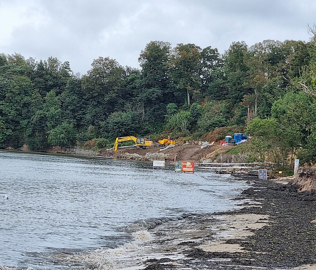 We were directed on to a path nearer the shore line, from where we could see the work ongoing at Middle Beach. The National Trust is removing thousands of tons of stone and concrete sea defences.
