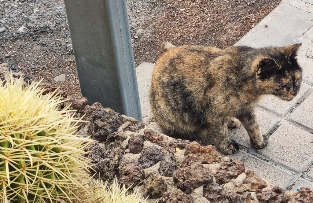 Having changed in the toilets, we made our way through an arch to the rocky beach close to the harbour where a resident cat was being fed.