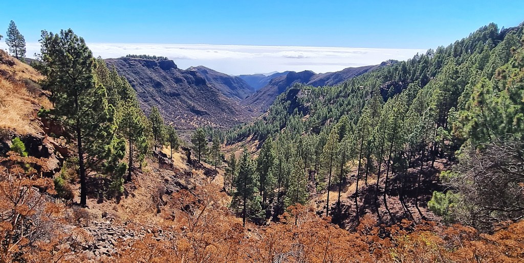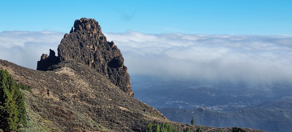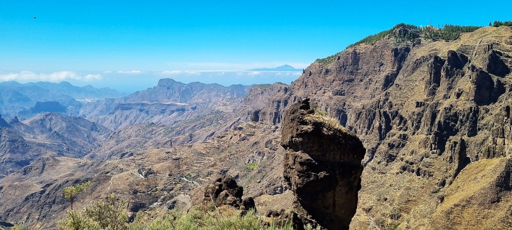 Almost from the outset, we could see Tenerife floating on the sea, with the Roque Nublo (meaning ‘the rock in the clouds’) in the foreground. This is the third highest point in Gran Canaria, at 1813 metres.