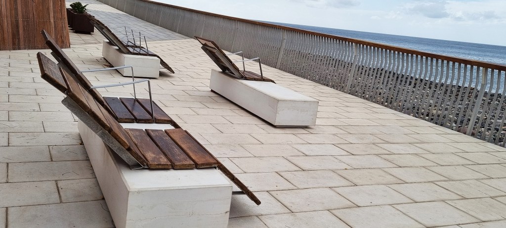 We returned to Playa de la Aldea for our picnic lunch. We sat on a shady rainbow-coloured bench on the promenade. I was concerned that we had deprived one aged resident of his favourite lunchtime spot – he staggered off in the opposite direction leaning heavily on his cane.