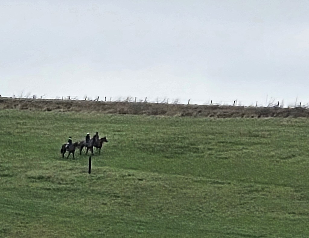 A little further on, and as if to confirm this, we spotted three horses being ridden side-by-side, some distance away.
