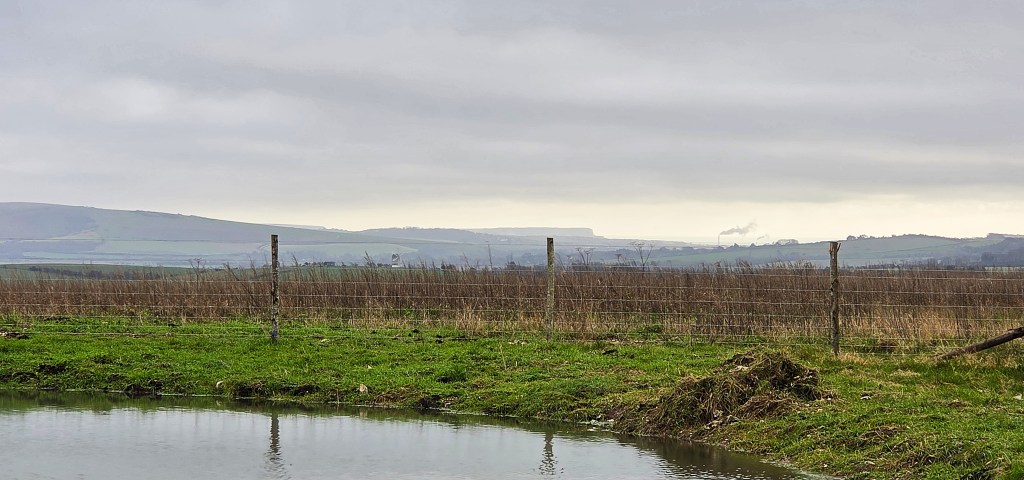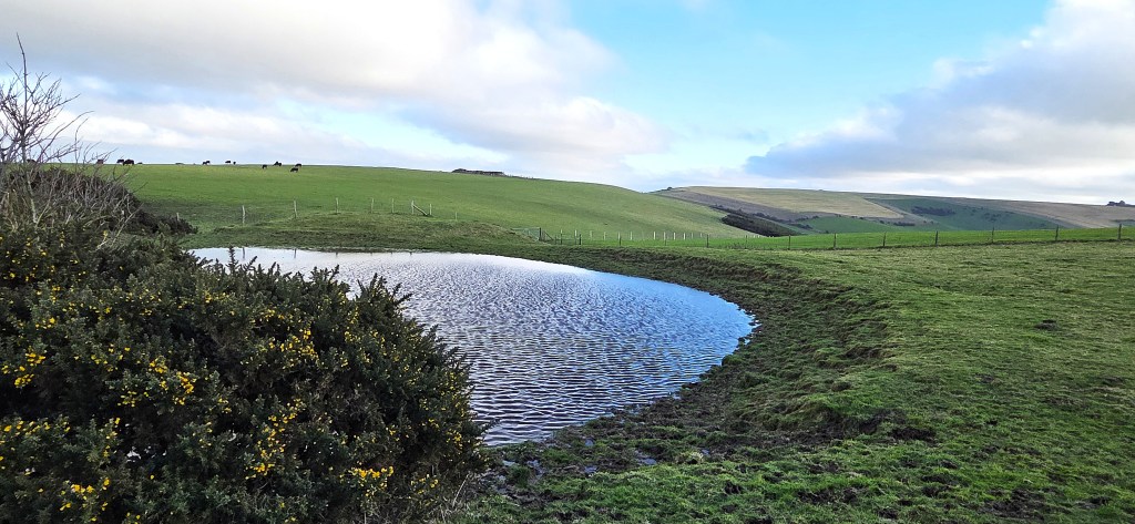 Shortly afterwards we passed a dew pond. In the background stood Newhaven, where two tall chimneys were smoking. These belong to the energy recovery facility, or ERF