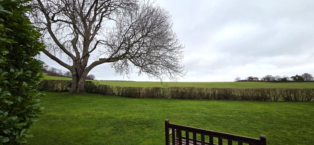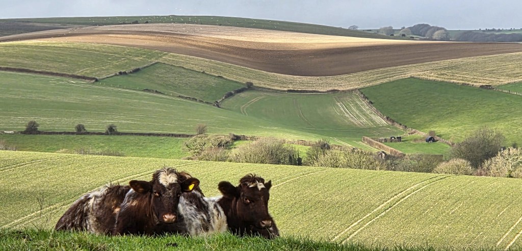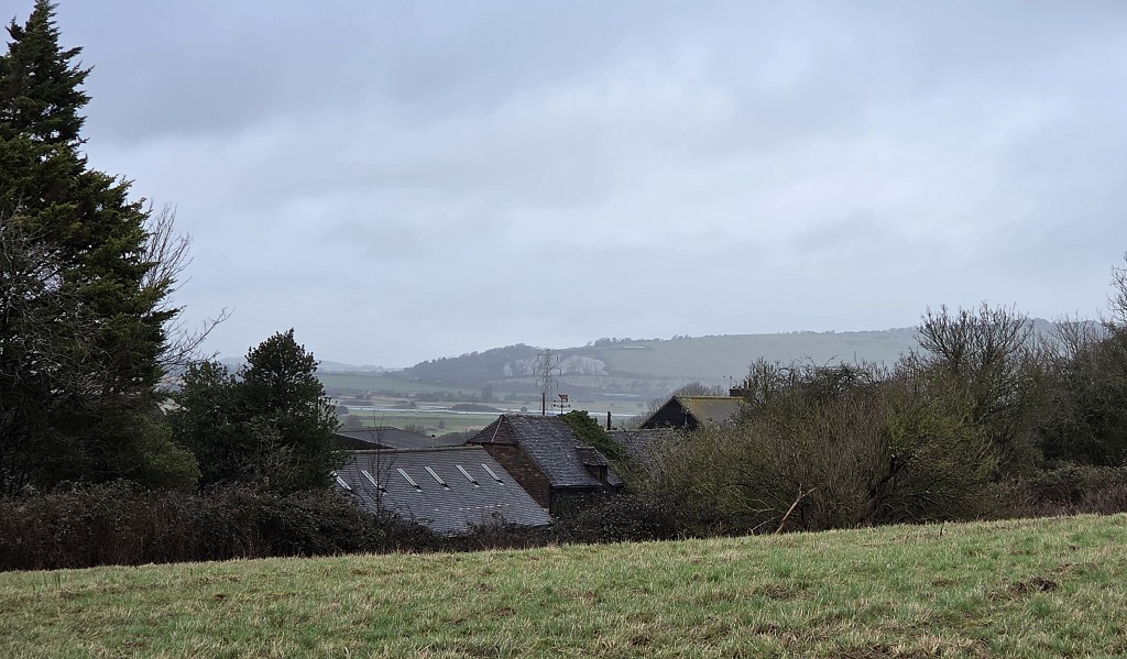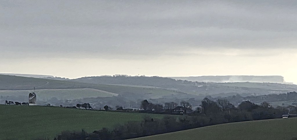 We walked to our Air B’n’B, Garden Lodge, which proved an outstanding choice, dead quiet, with a view over farmland to the Downs beyond.