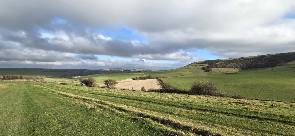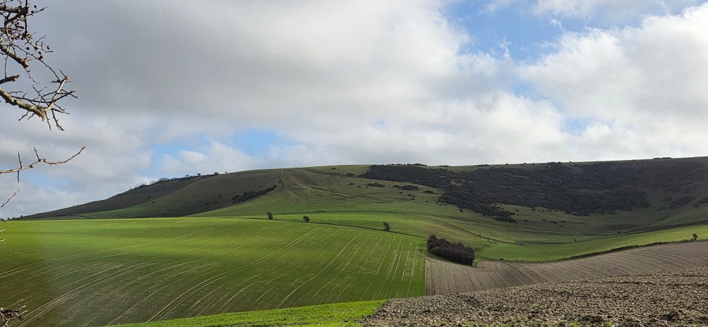 Our first task was to complete the extended and fairly arduous ascent of Plumpton Bostal. Both of us had stowed our walking poles in case of icy conditions here, but they proved unnecessary.
