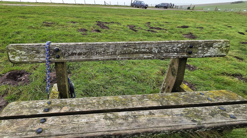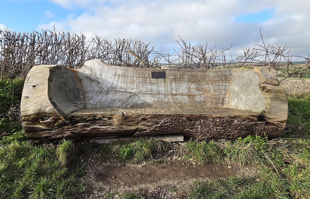 A little further on we found a bench carved in memory of farmers Peter and Tita Taylor. This was Peter Taylor of Housedean Farm and his first wife, who predeceased him. He married again after her death.