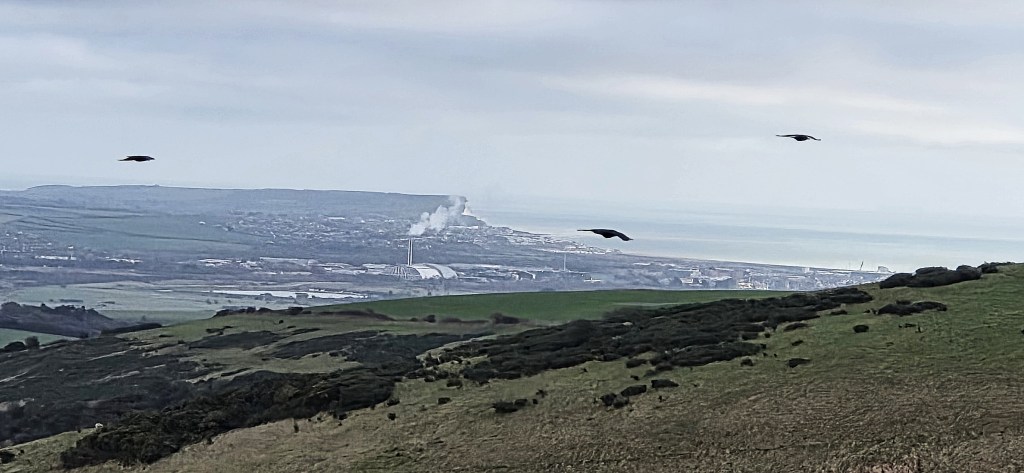 By the time we were roughly parallel with Iford, south of Kingston, we could also see the futuristic Newhaven ERF more clearly. This shot also captures three crows which decided to fly by at that moment.