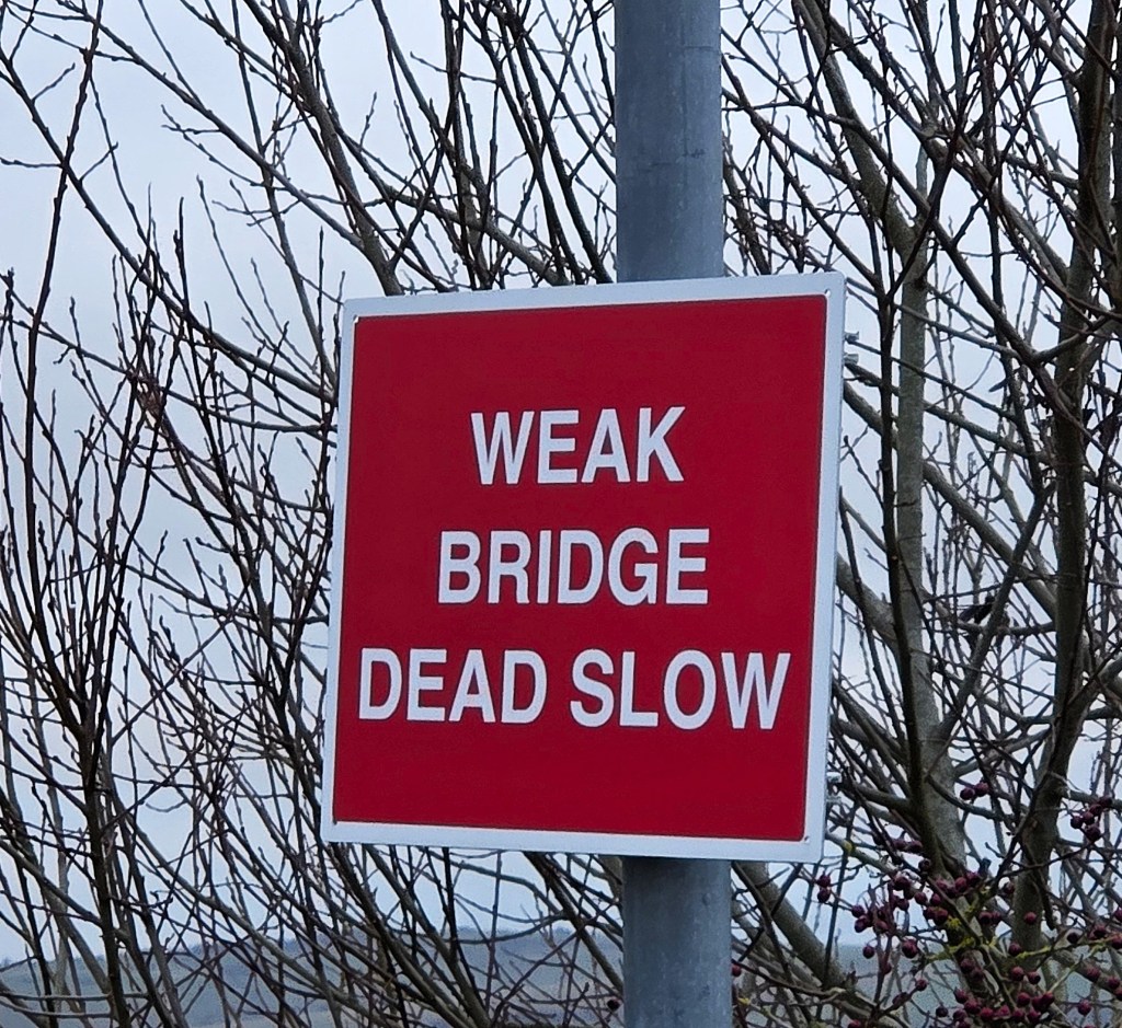 A warning sign tells vehicles to respect the bridge’s weakness. Just ahead of us, a small truck-full of sheep completed the crossing, a little bit faster than the ‘dead slow’ advised by the sign.