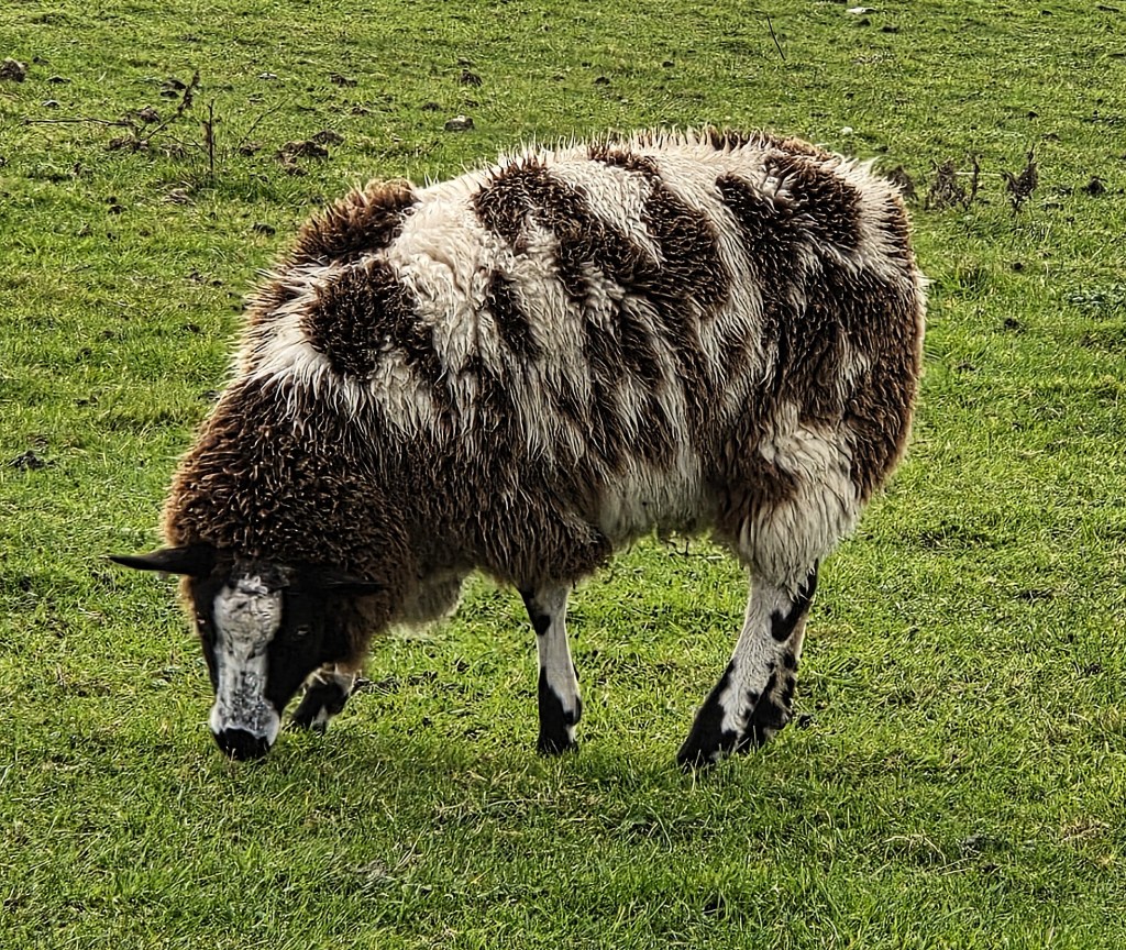 There was also a sheep to identify. I think it is almost a Jacob sheep, but not quite, since it has apparently been bred to be hornless, so it cannot be a proper, pure-bred Jacob.