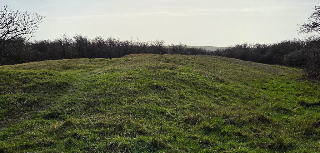 We stopped beside Long Burgh Long Barrow, one of up to fifty that sit on the Downs between Firle Beacon and Alfriston.