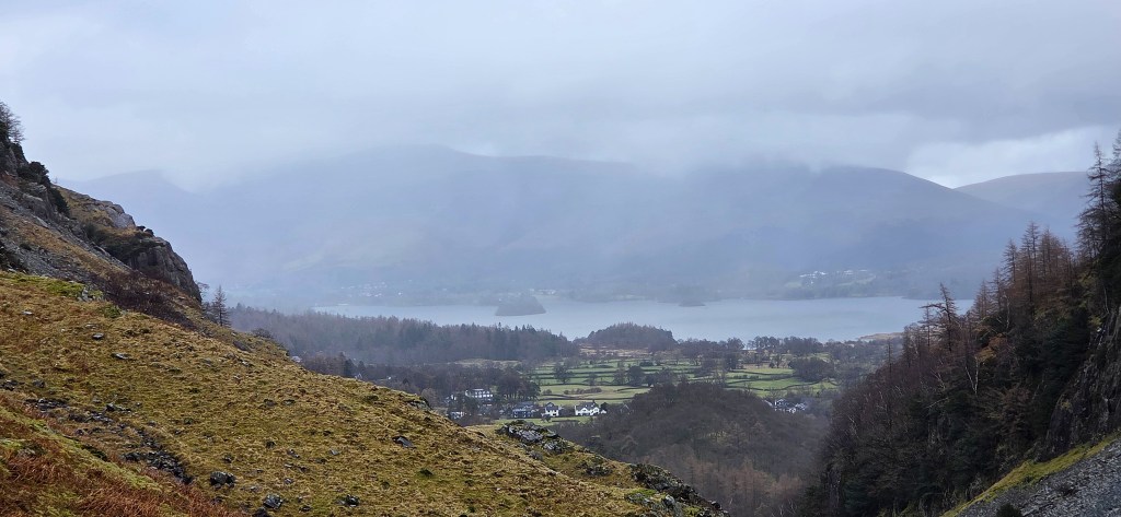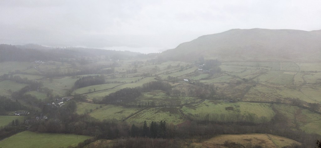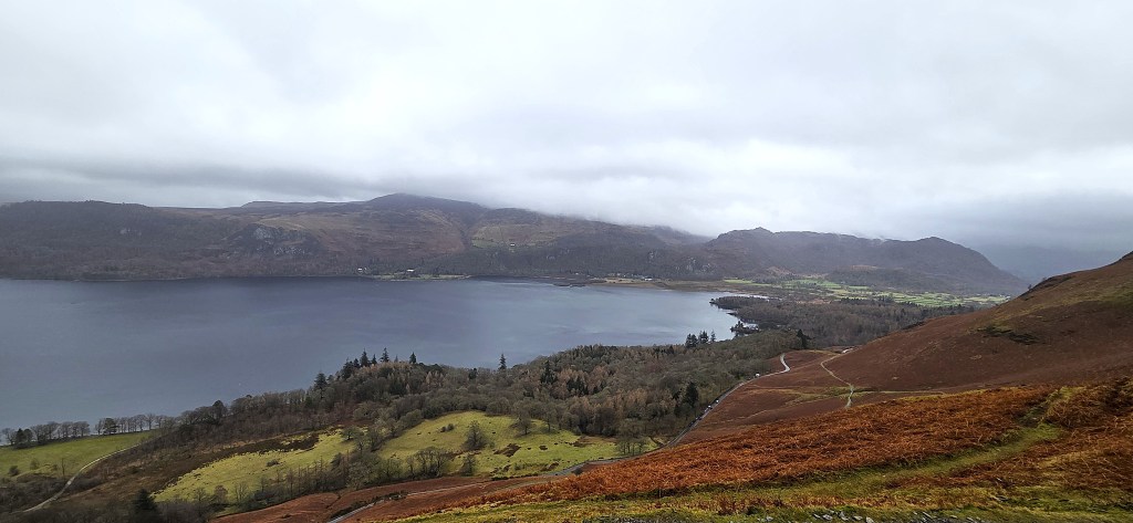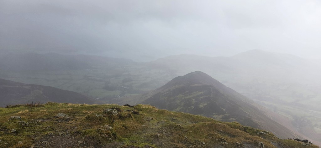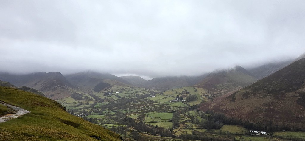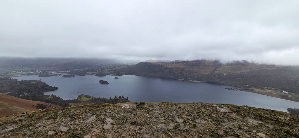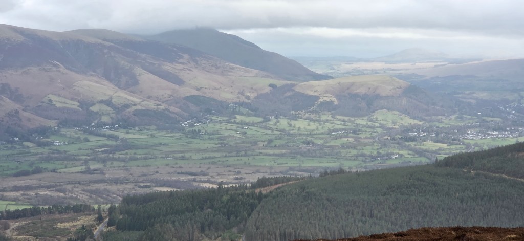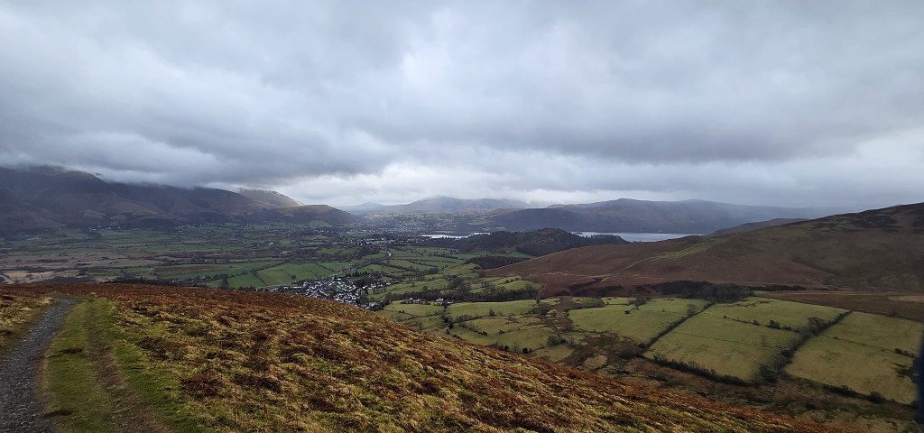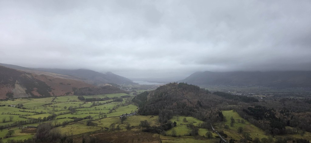 I was focused instead on the view below, which now extended well beyond Keswick, towards what I believe is Skiddaw.