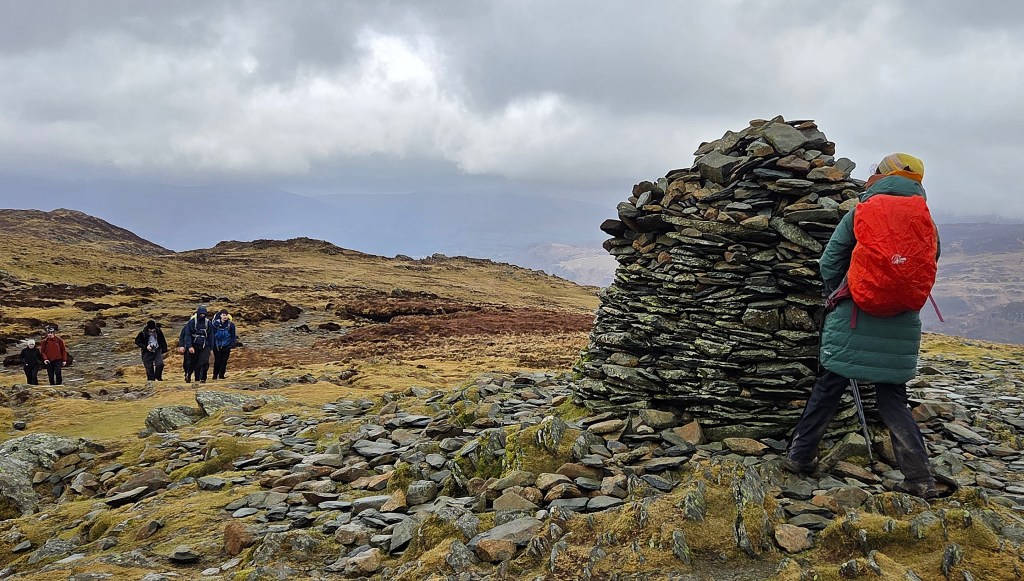 The path grew increasingly rocky as we climbed up Sleet How, and the occasional heavy gusts of wind demanded occasional pauses, until they had subsided.