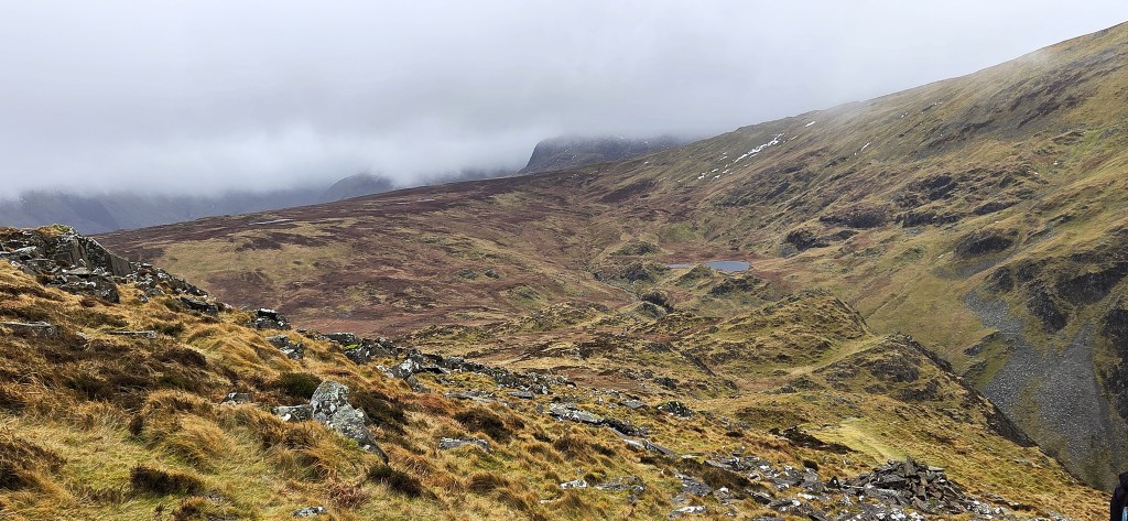 But it was not a good day. My photographs are mainly of cloud. As the summit threatened to grow increasingly inhospitable, we dropped down slightly, setting out in a northerly direction, towards Hobcarton End.