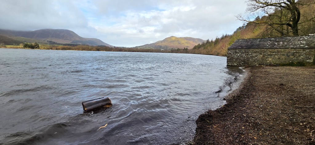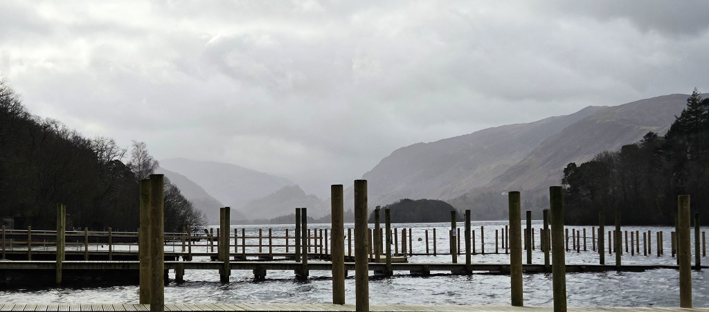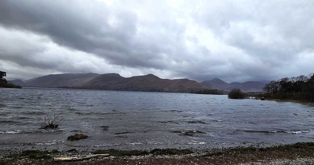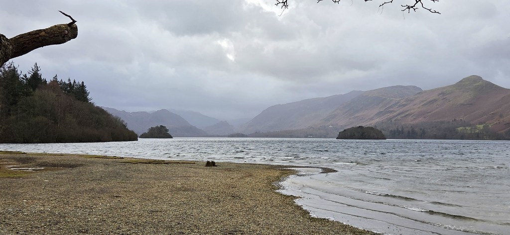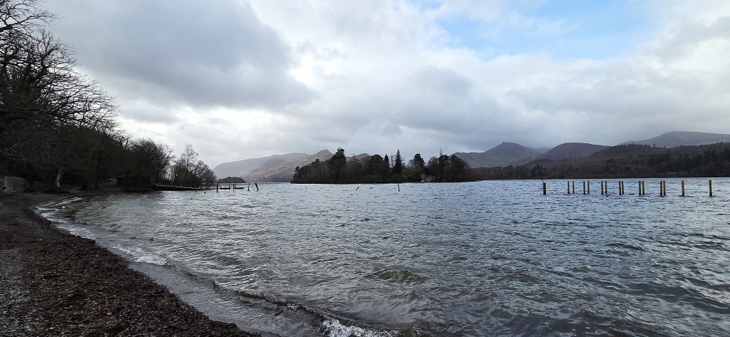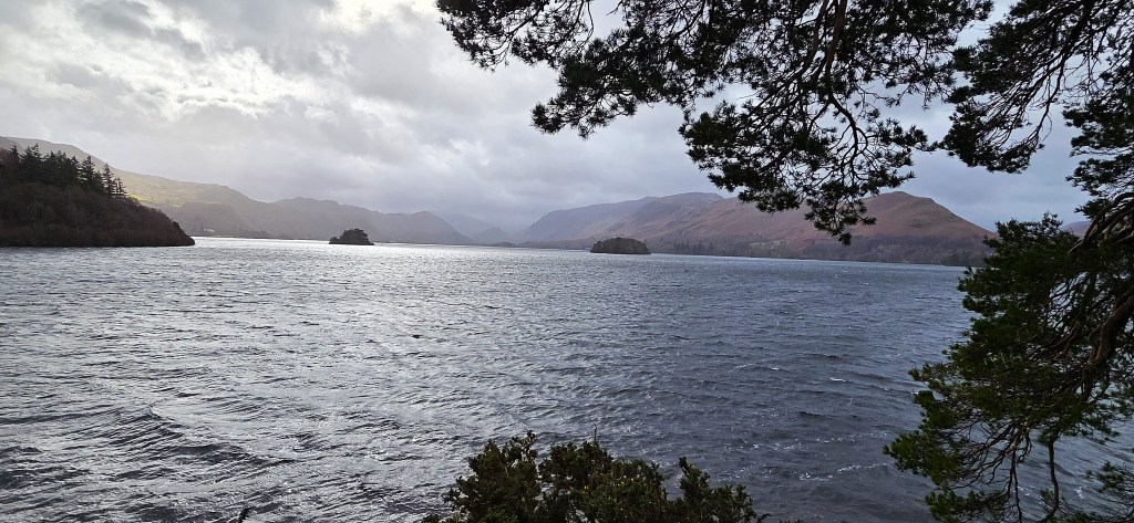 As we sped towards Derwent Water, we observed keenly the conditions up on the fells, where several patches of snow were still visible. The shower eventually passed and we even spotted a distant glimmer of sunlight!