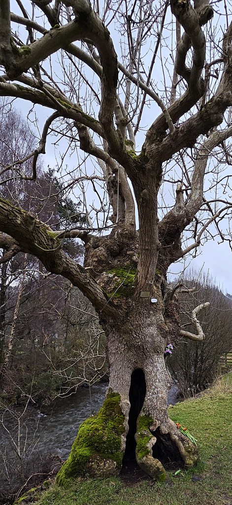 Following the path beside Newlands Beck, we passed an old hollow tree, with flowers placed beside it. There were two plates on the trunk, one a memorial to Laura Jane Head (1994-2022); the other saying: ‘La’ll Teds Tree, Never Forgotten, Last of the Summer Wine’.