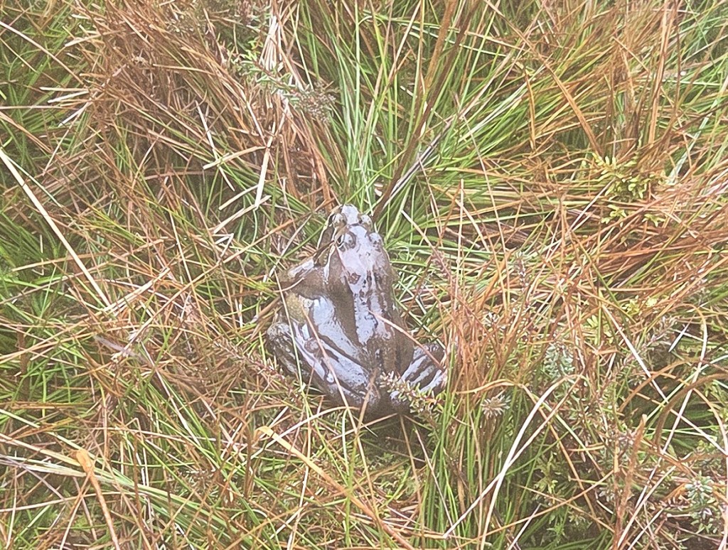 Part way down, more or less following the line of nearby Barrow Gill, we encountered several frogs disporting themselves in a stretch of puddled bogs. This little fellow was lucky not to get squashed!
