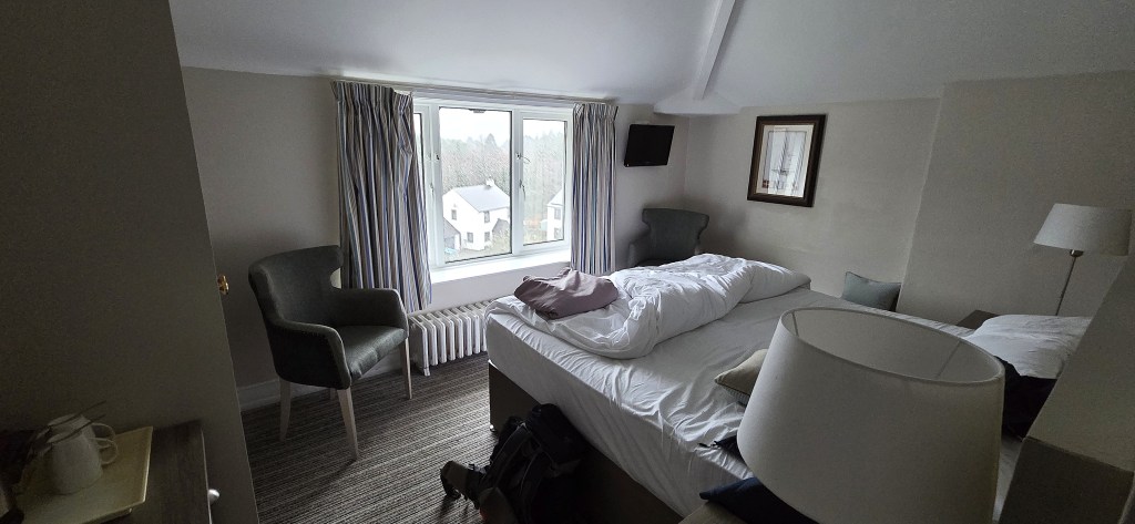 If the bedroom was a little poky, the bathroom was correspondingly generous. The wifi was distinctly dodgy, while the ancient pipes complained a little from about 04:00 each morning. On the other hand, our bathroom contained a bath, worth its weight in gold on a winter walking holiday in the Lakes.